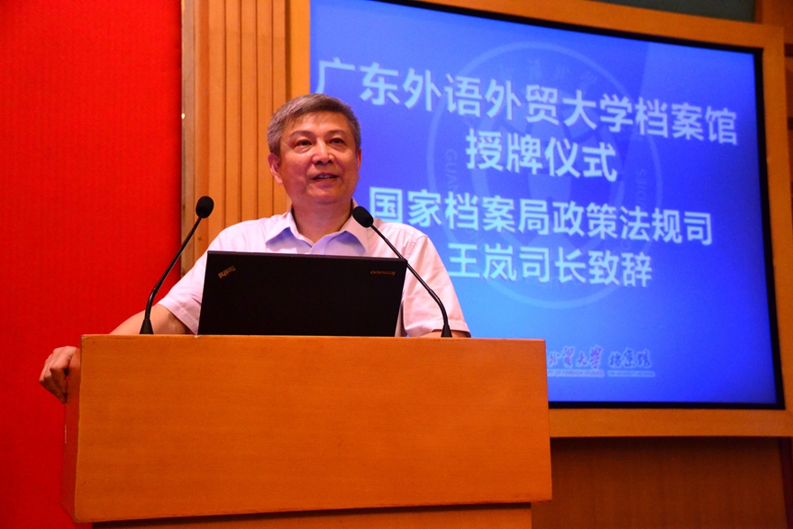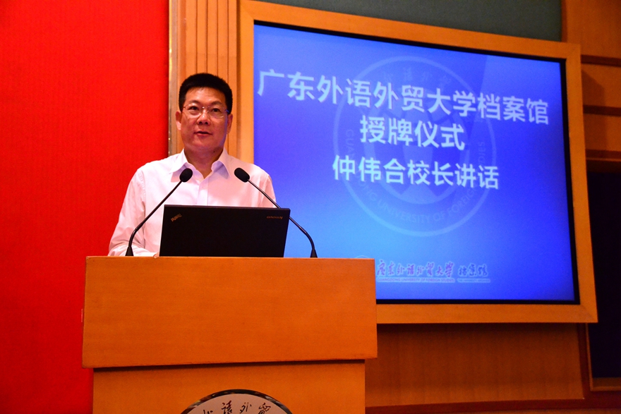 兄弟院校代表、省高校档案协会理事长、华南师范大学档案馆馆长柯友良祝贺我校档案馆成立。他说道,真实记录档案,是高校档案工作者义不容辞的历史责任。他期待广外档案馆能继续起到示范引领作用,实现档案工作的可持续发展,迈上新台阶。
