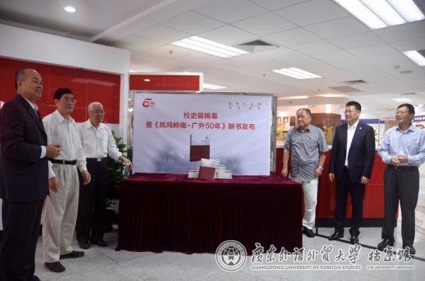 11月5日上午,建校50周年校史展暨《凤鸣岭南-广外50年》首发仪式在北校区图书馆大厅举行。校长仲伟合,原校党委书记庄明英,原校长黄建华,原校党委书记、校长徐真华,原校党委副书记陈建平,离退休老同志代表、职能部门负责人和师生代表等出席仪式。仪式由校党委副书记卢景辉主持。