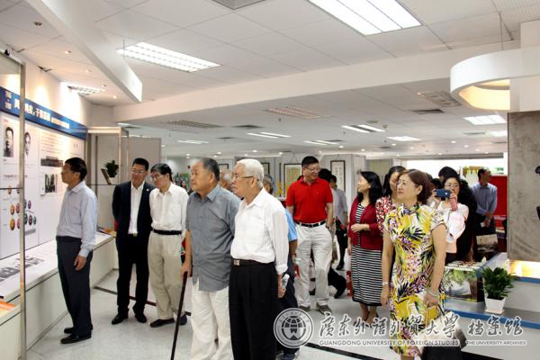 揭幕仪式后,所有人员一起参观了校史展。黄建华在采访中肯定了我校50年来办学规模的扩大和教育水平的提高。他希望我校能以史为鉴,不忘初心,不仅要汲取着前辈们艰苦奋斗的经验,更要着眼于现在,力争创造出更辉煌的成绩。庄明英表示,改革开放时期,我校选择了有别于北外与上外的第三条路——外语与专业结合,多年来我校坚持走这条彰显国际特色的道路,越走越宽,也越走越好。他对今后我校迈上教学发展的新台阶满怀期待。徐真华在参观校史展后,欣喜于我校50年来的办学成果,高度赞扬了历代校领导对我校发展方向的良好把握。他希望,未来我校能始终把教学质量、高素质人才和办学特色放在第一位,不断提高办学水平。