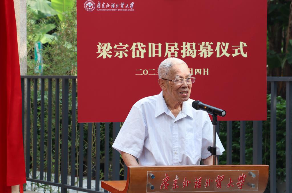 (来源:广东外语外贸大学新闻网、图书馆(档案馆))在纪念梁宗岱先生诞辰120周年之际,学校修复了位于云溪路10号梁宗岱曾居住过的旧居,并在11月4日举行揭幕仪式。校长闫相斌致辞。闫相斌,副校长刘建达,我校原校长黄建华,我校原党委书记、原校长徐真华,浙江大学文科资深教授许钧,北京外国语大学讲席教授王克非共同为梁宗岱旧居揭幕。刘建达主持揭幕仪式。