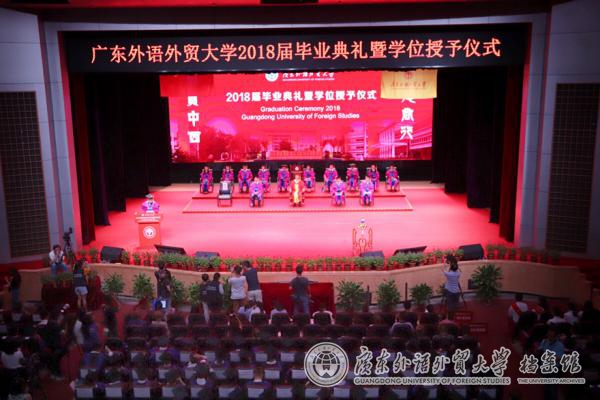 本网讯 6月26日清晨,空气还留着昨夜雨水的味道,阳光透过云层照亮了苍翠的树木,2018届广外毕业生在云山会堂迎来了属于他们的毕业典礼。我校校长石佑启在致辞中寄语毕业生深怀爱国心、敬畏心、平常心、进取心“四颗心”,做新时代有为青年。首场毕业典礼是文科基地、外国文化研究中心、词典中心、欧洲中心、英文学院、留学生院、西语学院毕业生专场,波兰共和国驻广州总领事馆总领事岳安娜·斯科柴克到场致辞。据悉,今年的毕业典礼共分7场次在南北校区举行。