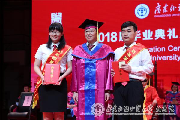 毕业生代表、留学生教育学院的吴静姝在发言中回顾了自己在校参加的世界文化节、中外价值观交流对话等活动,介绍了她的广外情。吴静姝表示,在我校,她经历许多在自己国家不能经历的事情,让自己从一个零基础的外国人变成一个能阅读中文书籍的广外人。她代表所有留学生向帮助过他们的老师表示衷心感谢。