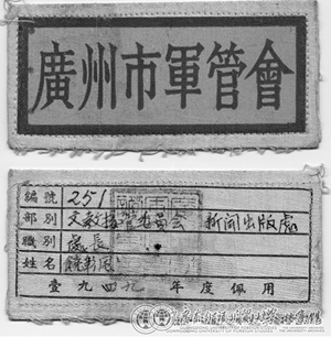 广州解放时期饶彰风佩戴的广州市军管会佩章