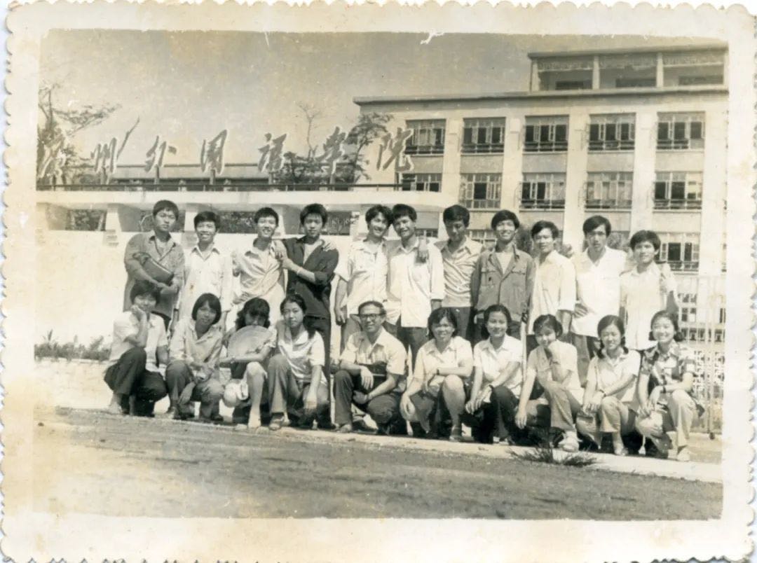 八二级德语师生在学院校门前留影
