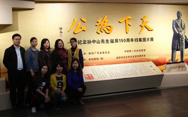 广东是伟大的民族英雄、伟大的爱国主义者、中国民主革命的伟大先驱孙中山先生的故乡,是他一生革命活动的重要基地。此次纪念孙中山先生诞辰150周年档案图片展精选出中国第二历史档案馆和省档案馆近400件珍贵馆藏档案,以历史事件为重点,以时间为序,分为反清革命、创建民国、实业救国、二次革命、护国护法、建国方略、国民革命、纪念尊崇等8个单元,共展出涵盖档案文献、历史照片、函札、手令、题词、印谱等多种形式的珍贵档案。档案馆全体党员认真聆听讲解员的相关讲解,仔细观看展出的每一件珍贵档案,不仅在思想上接受了洗礼,还从档案专业的角度出发就相关问题进行了学习和交流,大家都感叹不虚此行,获益匪浅。